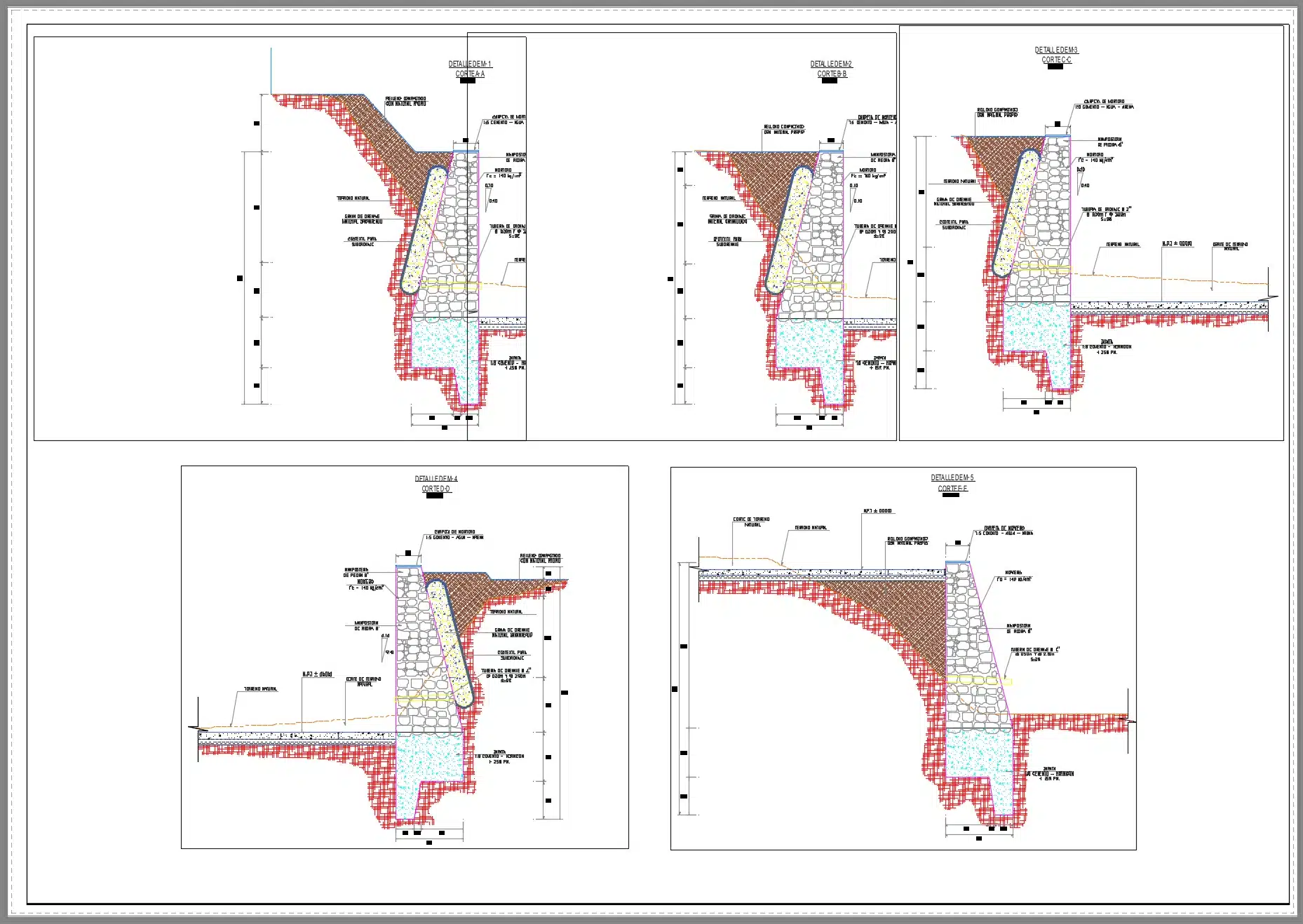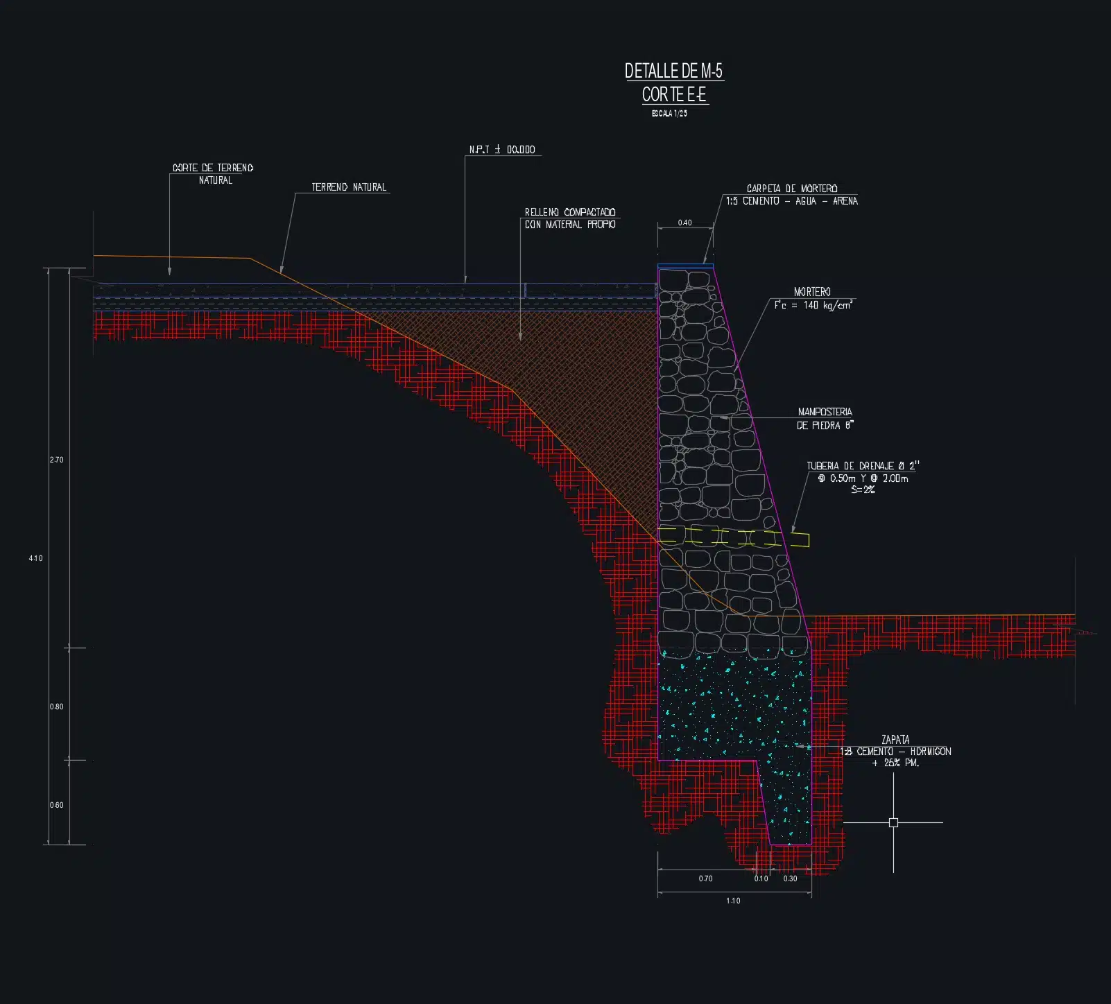 Detalle Constructivo Muro de Contención de Mampostería (AutoCAD)